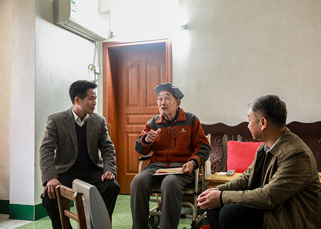 集團公司黨委書記、董事長朱堅和(右二),紀委書記翁科(左二)一行走訪慰問老黨員。